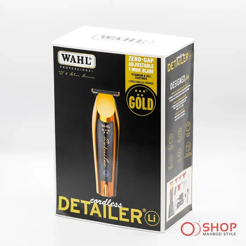 ماشین اصلاح حرفه‌ای Wahl Detailer Gold LA با تیغه‌های تیتانیومی و DLC برای برش‌های بسیار دقیق و حرفه‌ای و استفاده تو حجم طراحی شده. با باتری لیتیوم-یون قدرتمند، ۱۰۰ دقیقه کارکرد بی‌وقفه و شارژ سریع ۶۰ دقیقه‌ای، این تراشنده سبک (۲۸۰ گرم) و ارگونومیک، ابزار ایده‌آل برای آرایشگران حرفه‌ای است. قابلیت کار با سیم و بی‌سیم.
