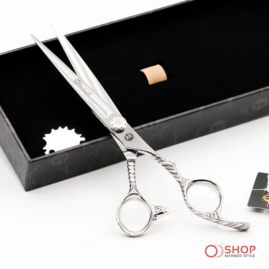 قیچیسایز بزرگ مکسینال طرح شیک که از فولاد ضدزنگ ژاپنی با کیفیت بالا ساخته شده‌اند. این قیچی‌ها با طراحی ارگونومیک  و سایز7 اینچ، برای آرایشگران حرفه‌ای و استفاده‌های طولانی‌مدت و حجم زنی بسیار مناسب هستند.. طرح نقره ایی ساده  ظاهری منحصر به فرد به این محصول بخشیده است. این ست انتخابی عالی برای کسانی است که به دنبال ابزارهای باکیفیت و زیبا هستند.