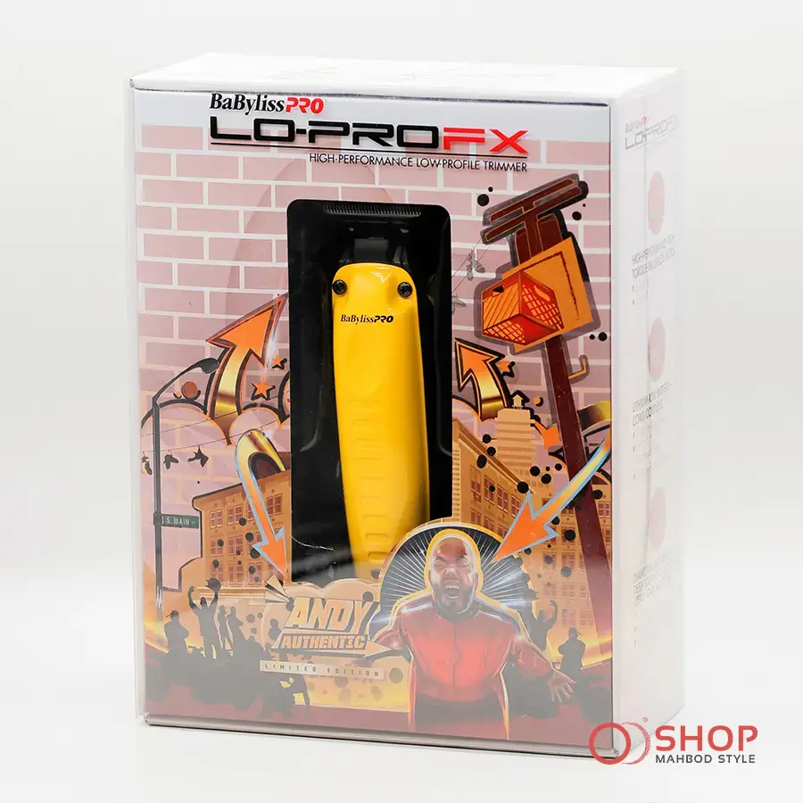 تریمر لو پرو اف ایکس زرد بابلیLO-PRO FX Babyliss pro-l یک خط زن حرفه‌ای بی‌سیم با تیغه تی شکل گرافیتی ۳۶۰ درجه است که برش‌های ظریف ارائه می‌دهد. موتور براشلس 6800 دور در دقیقه و باتری 3300 میلی‌آمپری با ۴ ساعت شارژدهی دارد. نشانگر LED و طراحی فلزی ارگونومیک، آن را برای آرایشگران کارآمد می‌کند.